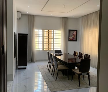 The propety is a well furnished 5 bedroom duplex with Boys Quarter in Guzape Abuja. Other features include: Massive Kitchen and Store, 2 living Rooms, Dining Area, Guest Toilet, Server Room, Study, Walk in closet in mamters bedroom, Exquisite bathroom in masters bedroom with a suana, Box room, Gate House, Garden sit out area, Generator House, Carport.