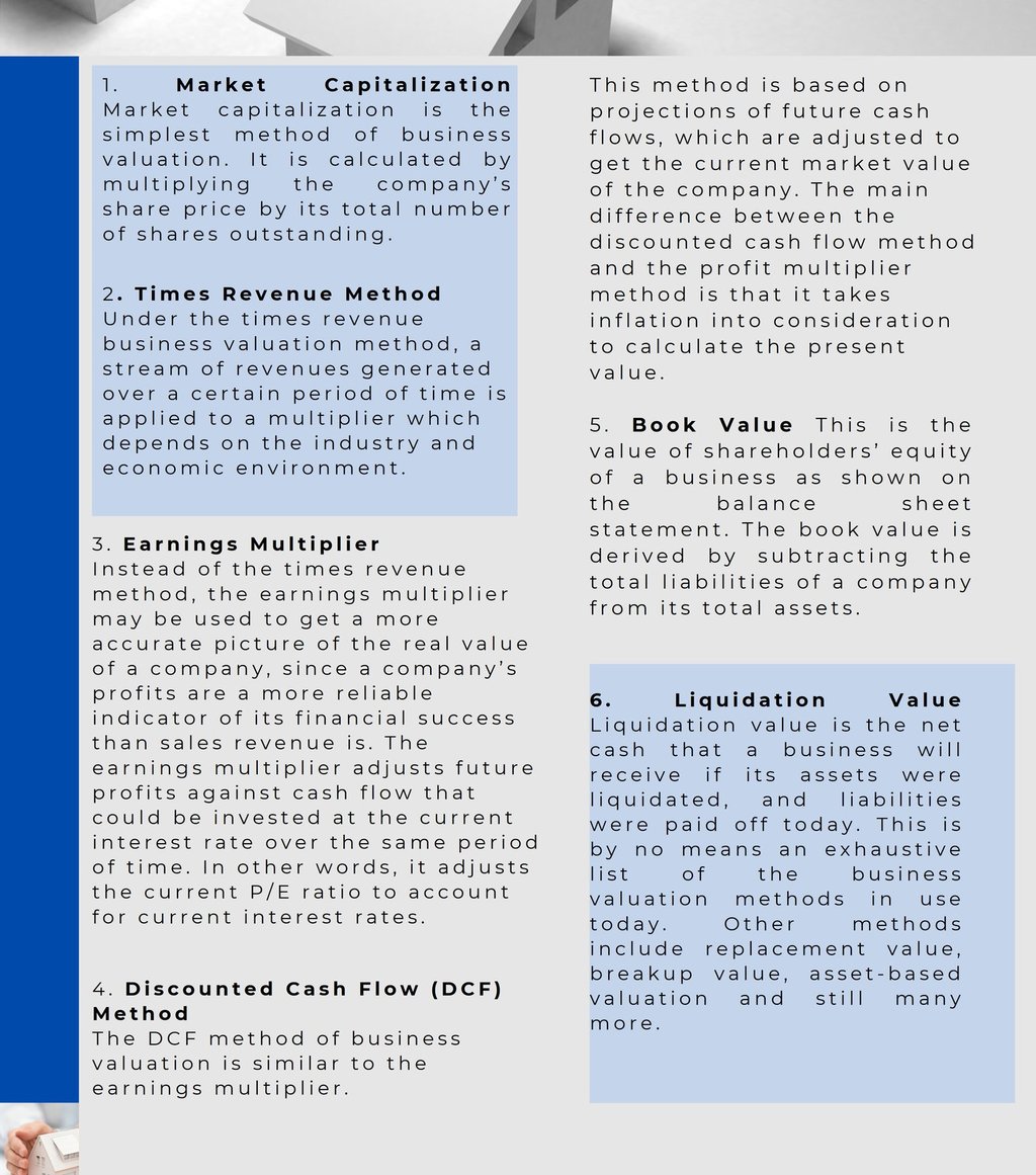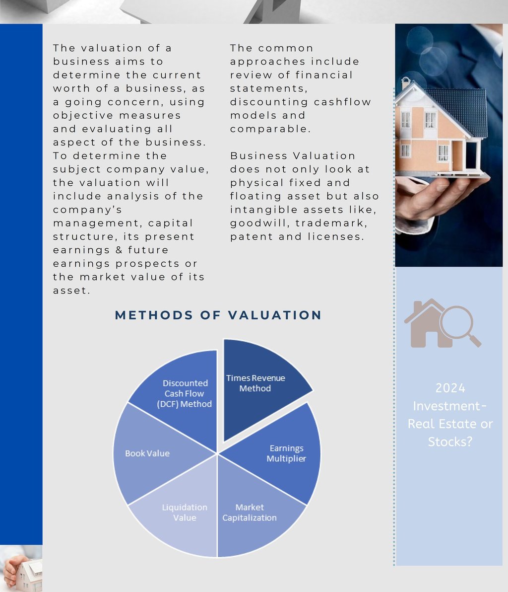 Valuation of Company for divestment or merger purposes, is based on Business Valuation Concept. (COMMERCIAL VALUATION) Business valuation is a general process of determining the economic value of a whole business or company unit.